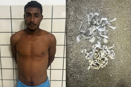 Isaque Pereira, de 25 anos, vulgo “Malvadão” e morador do Bairro Liberdade II, em Teixeira de Freitas, foi conduzido à Delegacia Territorial da Polícia Civil de Teixeira de Freitas. Após os procedimentos de oitiva, o delegado plantonista Charlton Bortolini formalizou a prisão em flagrante do suspeito pelo crime de tráfico de drogas (Artigo 33 da Lei de Drogas).
