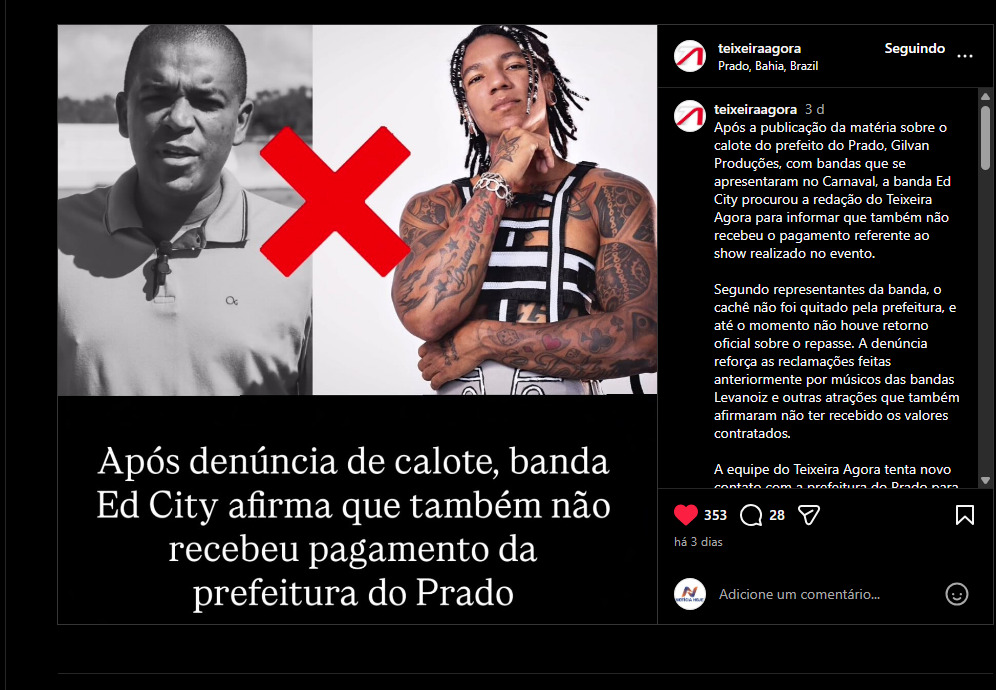 Além de Prado, os músicos relatam que outras prefeituras da região também não quitaram os contratos referentes às apresentações carnavalescas. Os artistas alegam que seus empresários têm cobrado insistentemente os gestores municipais, mas não receberam os valores acordados na íntegra.