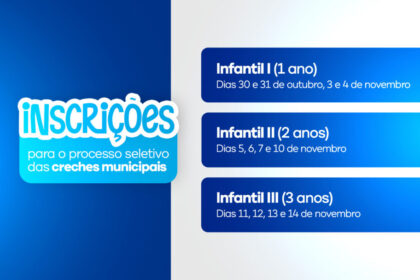 A Prefeitura Municipal de Teixeira de Freitas, por meio da Secretaria de Educação, informa que estarão abertas as inscrições para o processo de seleção das creches municipais referentes ao ano letiv...