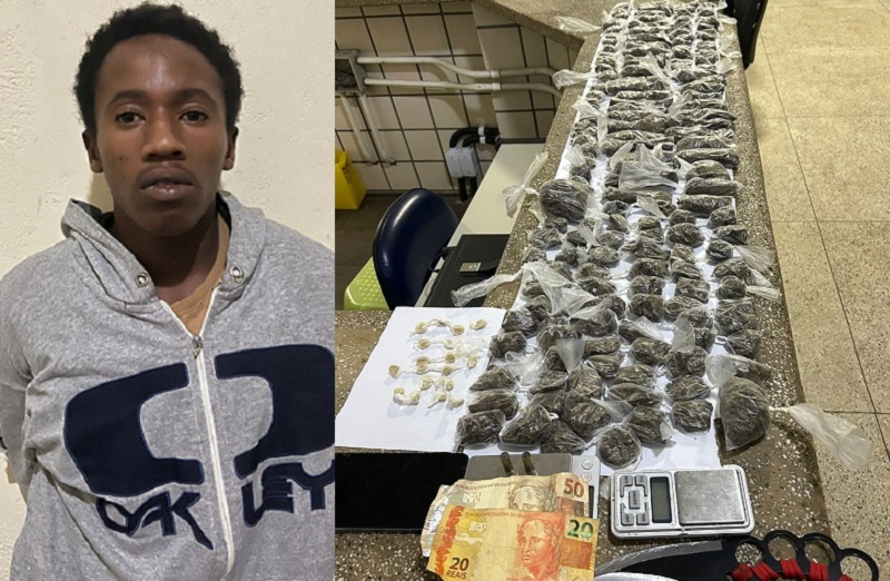 O suspeito foi identificado como Andreison Adão Silva, 19 anos, conhecido como “Neguinho”. Ele foi apresentado na Delegacia Territorial de Teixeira de Freitas, onde o delegado plantonista, Gilmar de Meireles Prates, o autuou em flagrante pelo crime de tráfico de drogas (artigo 33 da Lei 11.343/2006) e cumpriu o mandado de prisão já existente.