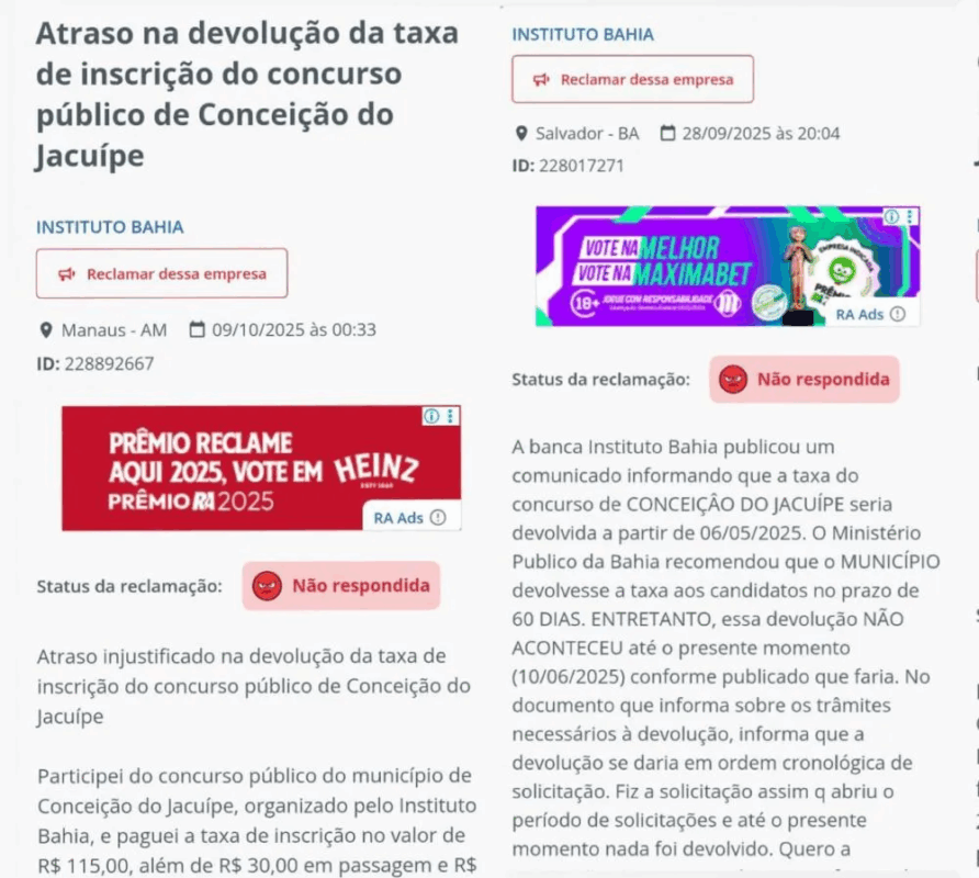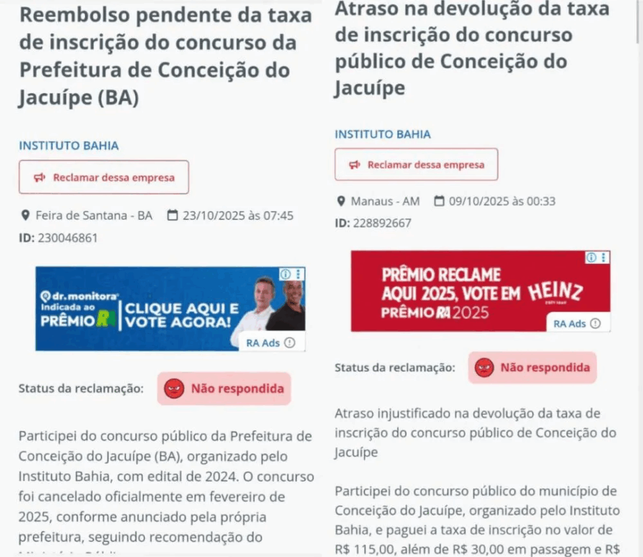 Após o cancelamento do concurso público da cidade de Conceição do Jacuípe em fevereiro deste ano, por conta de um festival de fraudes e irregularidades investigadas pelo Ministério Público da Bahia (MP-BA),  os candidatos, já desiludidos, foram jogados de lado e esquecidos pela referida empresa.