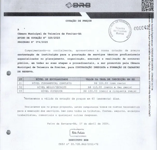 Mais uma situação envolvendo a empresa responsável pela realização do concurso público da Câmara Municipal de Teixeira de Freitas -BA.