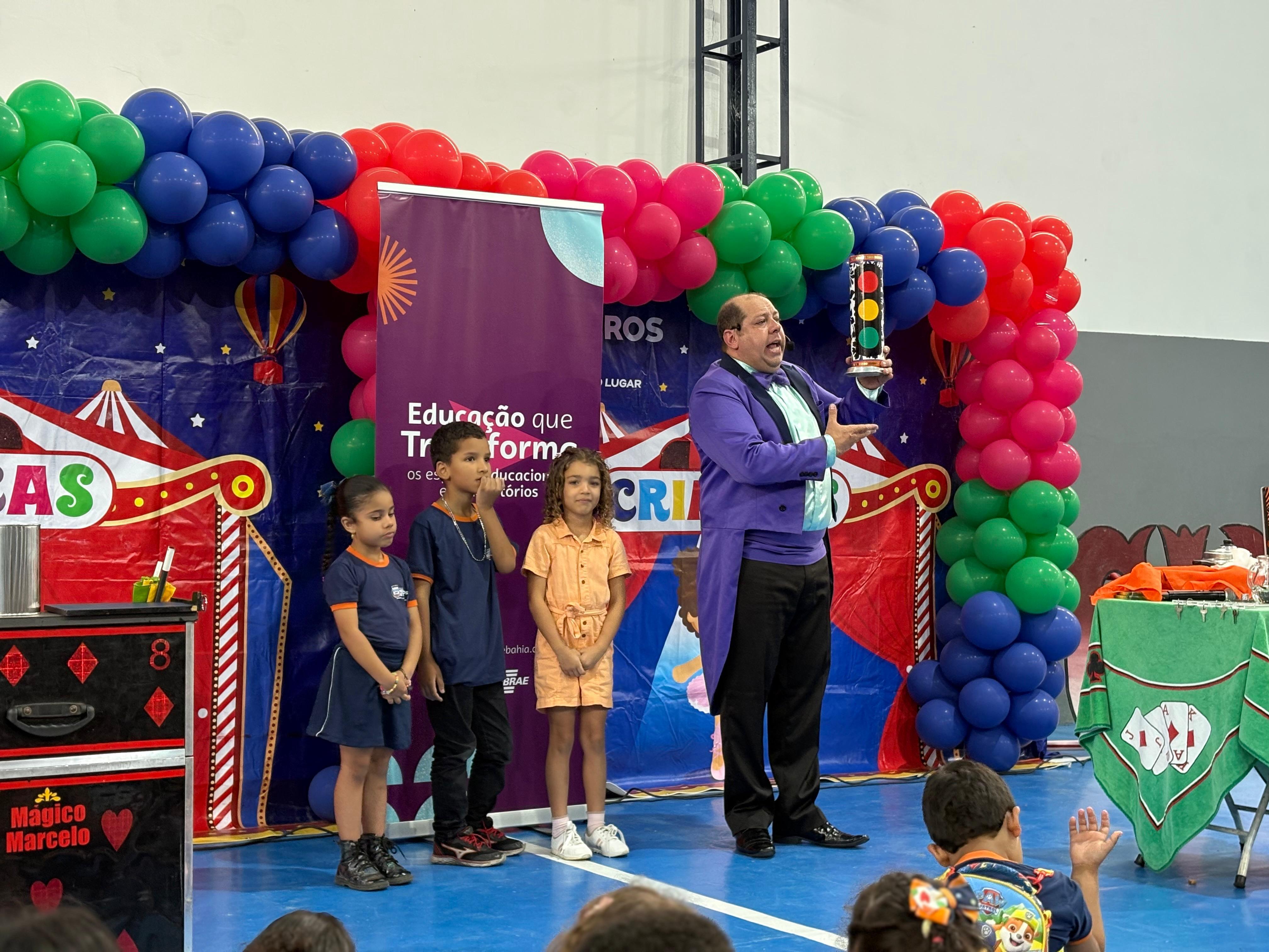 A ação, realizada pelo Sebrae e o Sicoob Credinorte, em parceria com a Prefeitura de Medeiros Neto, por meio da Secretaria Municipal de Educação, levou conhecimento e diversão para os alunos por meio de uma apresentação lúdica do Mágico Marcelo.