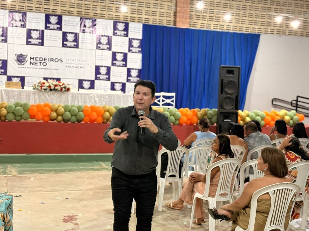 A Prefeitura de Medeiros Neto, através da Secretaria de Educação realizou, no fim da tarde desta segunda-feira, 09 de fevereiro, a abertura oficial da Jornada Pedagógica 2026. O evento ocorreu na quadra poliesportiva da Escola Christinna de Amarante e Mota e reuniu centenas de participantes, entre diretores, coordenadores pedagógicos e professores da rede pública municipal de ensino.