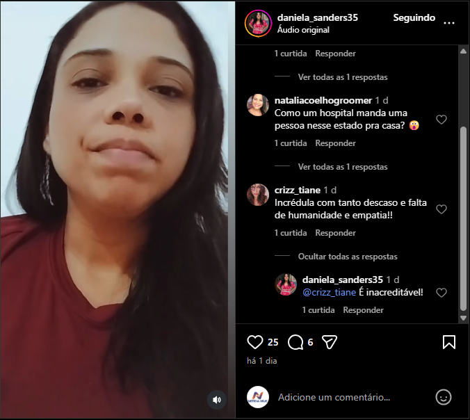 A Influencer em uma de suas publicações questionou o Secretário Municipal de Saúde de Mucuri -BA, por qual motivo, a cirurgia ainda não foi realizada, e o que o poder público estaria fazendo com os mais de R$ 22 milhões de reais de arrecadação/mês, do município.