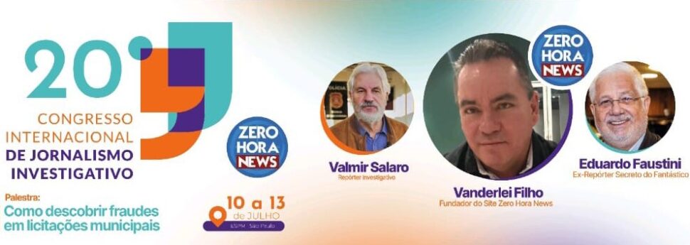 No primeiro dia do evento, quinta-feira, 10 de julho, das 14h30 às 16h, Vanderlei Filho ministrará uma plenária com oficina prática, intitulada “Como descobrir fraudes em licitações municipais”, voltada a jornalistas e estudantes de jornalismo interessados em técnicas de apuração e investigação de irregularidades na administração pública.