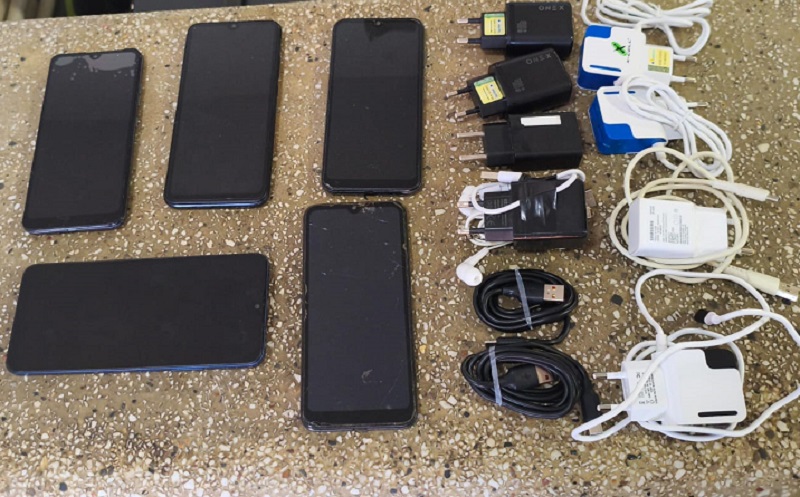 No interior do carro, foram encontrados seis pacotes do tipo comumente usado para esse fim criminoso. Ao serem abertos, os policiais localizaram cinco aparelhos celulares, oito bases de carregador, três cabos e um fone de ouvido.