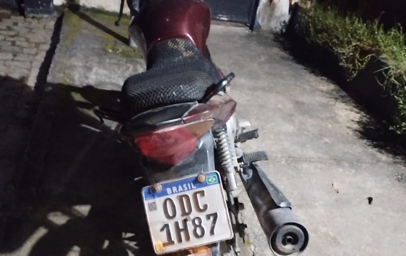 Os policiais avistaram uma moto estacionada em uma esquina, sem retrovisores, o que chamou a atenção da guarnição. Após consulta ao sistema via aplicativo, foi constatado que o veículo possuía restrição. A motocicleta, uma Honda CG 150 FAN, de cor vermelha, foi imediatamente apresentada na Delegacia de Polícia da cidade.