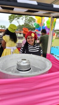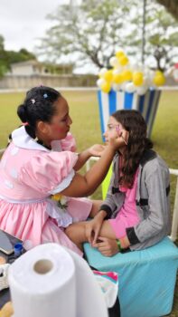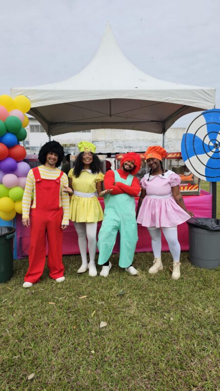 A satisfação foi garantida com a distribuição de presentes, sacolinhas-surpresa e um buffet especial que incluiu pipoca, algodão doce e cachorro-quente.