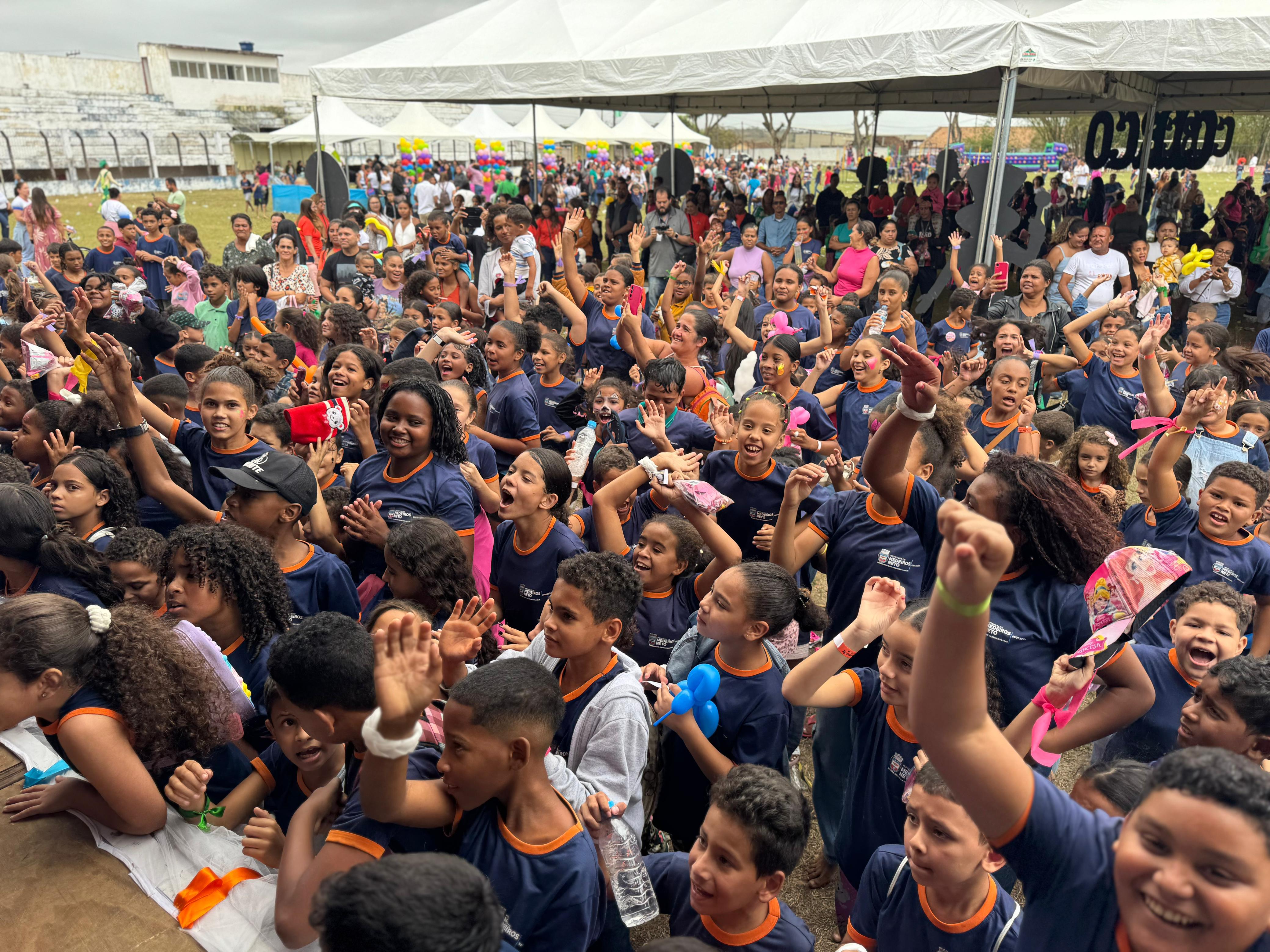 O Estádio Municipal de Medeiros Neto foi palco, na manhã desta sexta-feira (24), da tradicional Festa do Mês das Crianças, um evento consolidado como legado da atual gestão municipal. A celebração reuniu centenas de crianças da rede de ensino municipal, marcando um dia dedicado à alegria e ao cuidado com a infância.