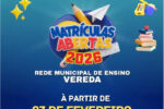 Vereda inicia matrículas e rematrículas para 2026 na Rede Municipal de Ensino.