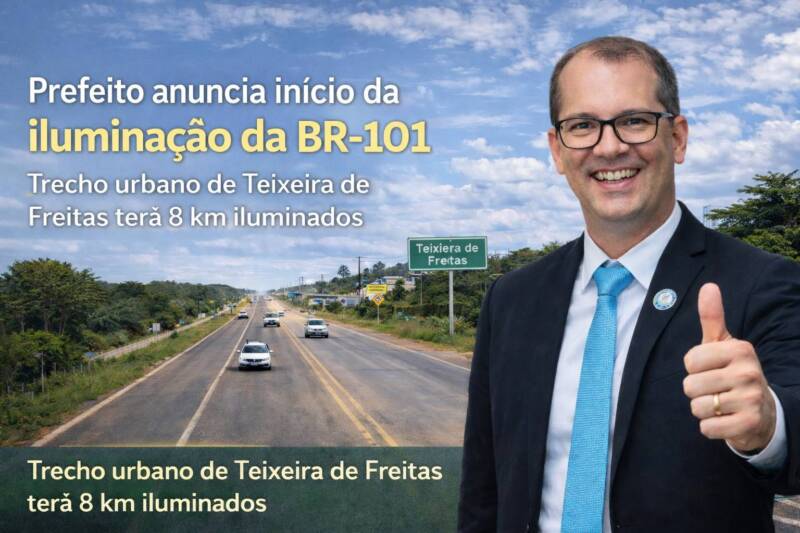 Após anos de expectativa e promessas de gestões anteriores, Teixeira de Freitas finalmente inicia a obra de iluminação do trecho urbano da BR-101. O anúncio foi feito pelo prefeito Marcelo Belitardo em suas redes sociais, confirmando que o processo burocrático foi concluído e que a empresa responsável já deu início aos trabalhos neste começo de 2026.
